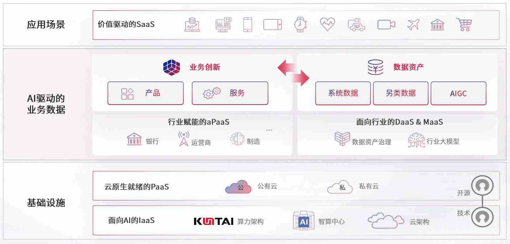 数字时代,,围绕企业数字化转型的关键要素,,,,J9直营集团数码开创性的提出数云融合战略和技术体系框架,,,着力在云原生、、、、数字原生、、、AI原生和信创产业上架构产品和服务能力,,,为处在不同数字化转型阶段的快消零售、、汽车、、、金融、、、医疗、、、政企、、教育、、、运营商等行业客户提供泛在的敏捷IT能力和融合的数据驱动能力,,构建跨界融合创新的数字业务场景和新业务模式,,助力企业级客户建立面向未来的核心能力和竞争优势,,全面推动社会的数字化、、、智能化转型升级。。。